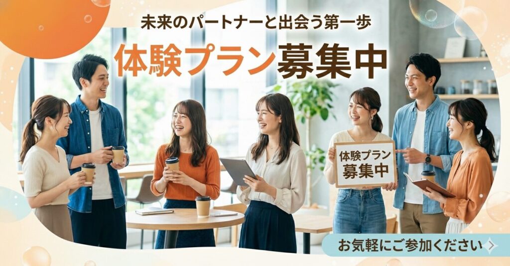 通常のプランと同様に、通常入会に必要な手続きやカウンセリングを行い、プロフィールを作成したうえで、結婚相談所のシステムにご登録いただきます。体験プラン期間中のシステム登録料は不要です。