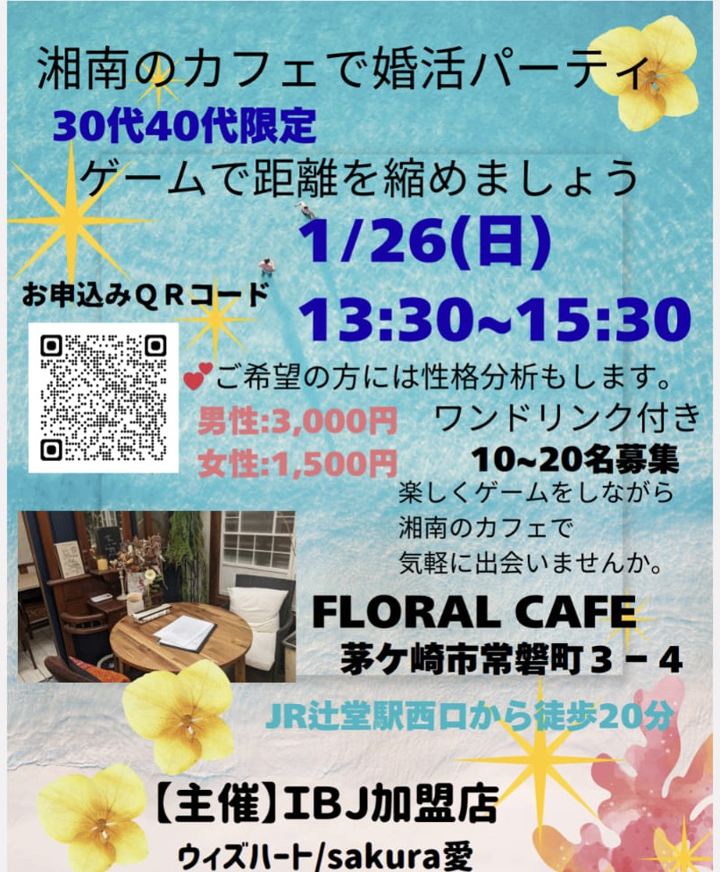 湘南のカフェ(湘南 FLORAL CAFE)で初心者向けの婚活パーティーをやります